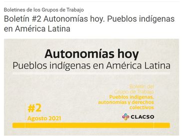 Grupo de Trabajo CLACSO Pueblos indígenas autonomías y derechos colectivos Boletín Autonomías hoy. Pueblos indígenas en América Latina